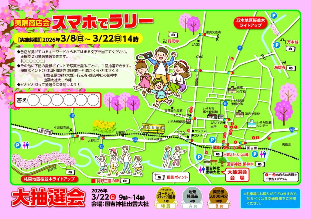 主催:夷隅の桜・菜の花まつり運営委員会前0470-86-3105(いすみ市商工会)
